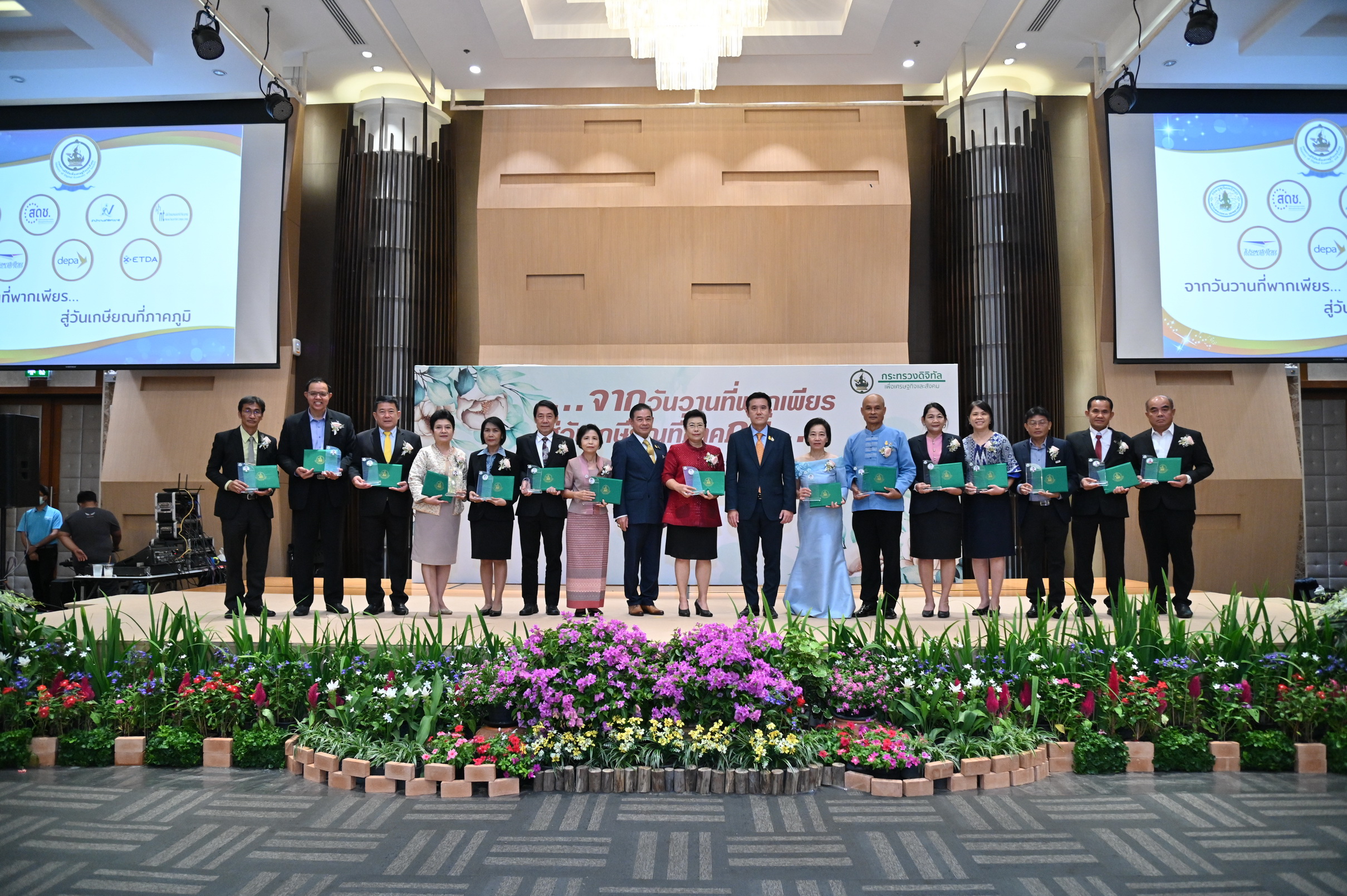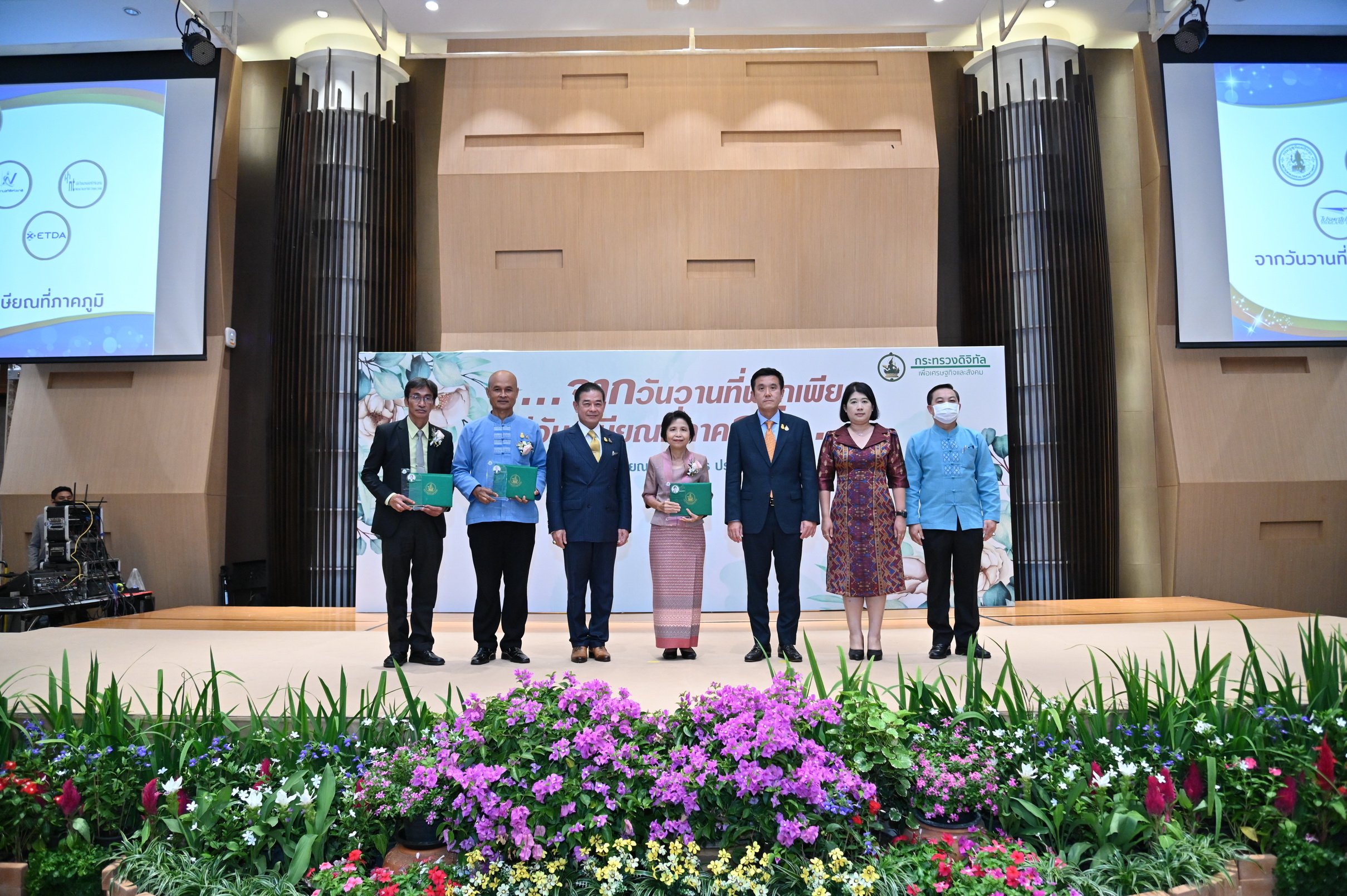 เมื่อวันที่ 23 กันยายน 2565 เวลา 16.00 น. ดร.ชมภารี ชมภูรัตน์ อธิบดีกรมอุตุนิยมวิทยา พร้อมด้วย ว่าที่ร้อยตรี ธนะสิทธิ์ เอี่ยมอนันชัย รองอธิบดีกรมอุตุนิยมวิทยา ฝ่ายวิชาการ ร่วมพิธีมอบโล่และประกาศนียบัตรแก่ผู้เกษียณอายุราชการ ของกระทรวงดิจิทัลเพื่อเศรษฐกิจและสังคม ประจำปี 2565 ในการนี้กรมอุตุนิยมวิทยามีผู้เข้ารับโล่และประกาศนียบัตร จำนวน 3 ท่านได้แก่ นายธนาวุฒิ ปัญจพรอุดมลาภ รองอธิบดีกรมอุตุนิยมวิทยา ฝ่ายปฏิบัติการ นางสาวสิริน้อย องค์ศิริวิทยา รองอธิบดีอธิบดีกรมอุตุนิยมวิทยา ฝ่ายบริหาร และนายสำเริง มั่นคง ผู้อำนวยการกองเครื่องมืออุตุนิยมวิทยา โดยมีนายชัยวุฒิ ธนาคมานุสรณ์ รัฐมนตรีว่าการกระทรวงดิจิทัลเพื่อเศรษฐกิจและสังคม (ดีอีเอส) เป็นประธาน ณ ห้องประชุม ชั้น 2 บริษัท ทีโอที จำกัด (มหาชน) แจ้งวัฒนะ