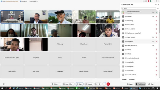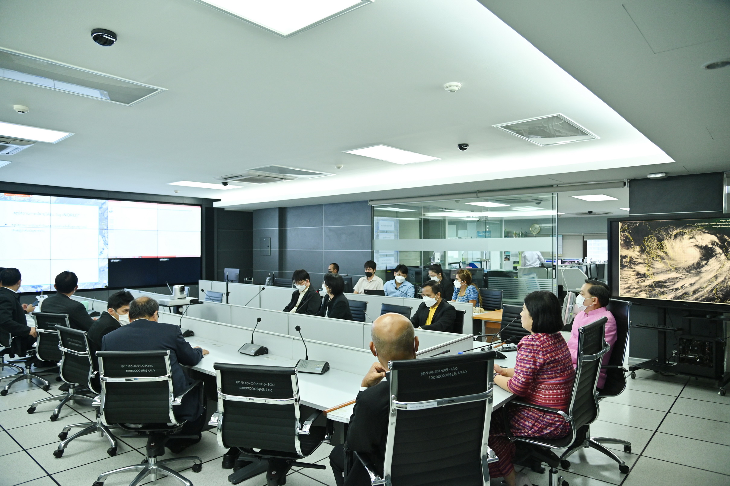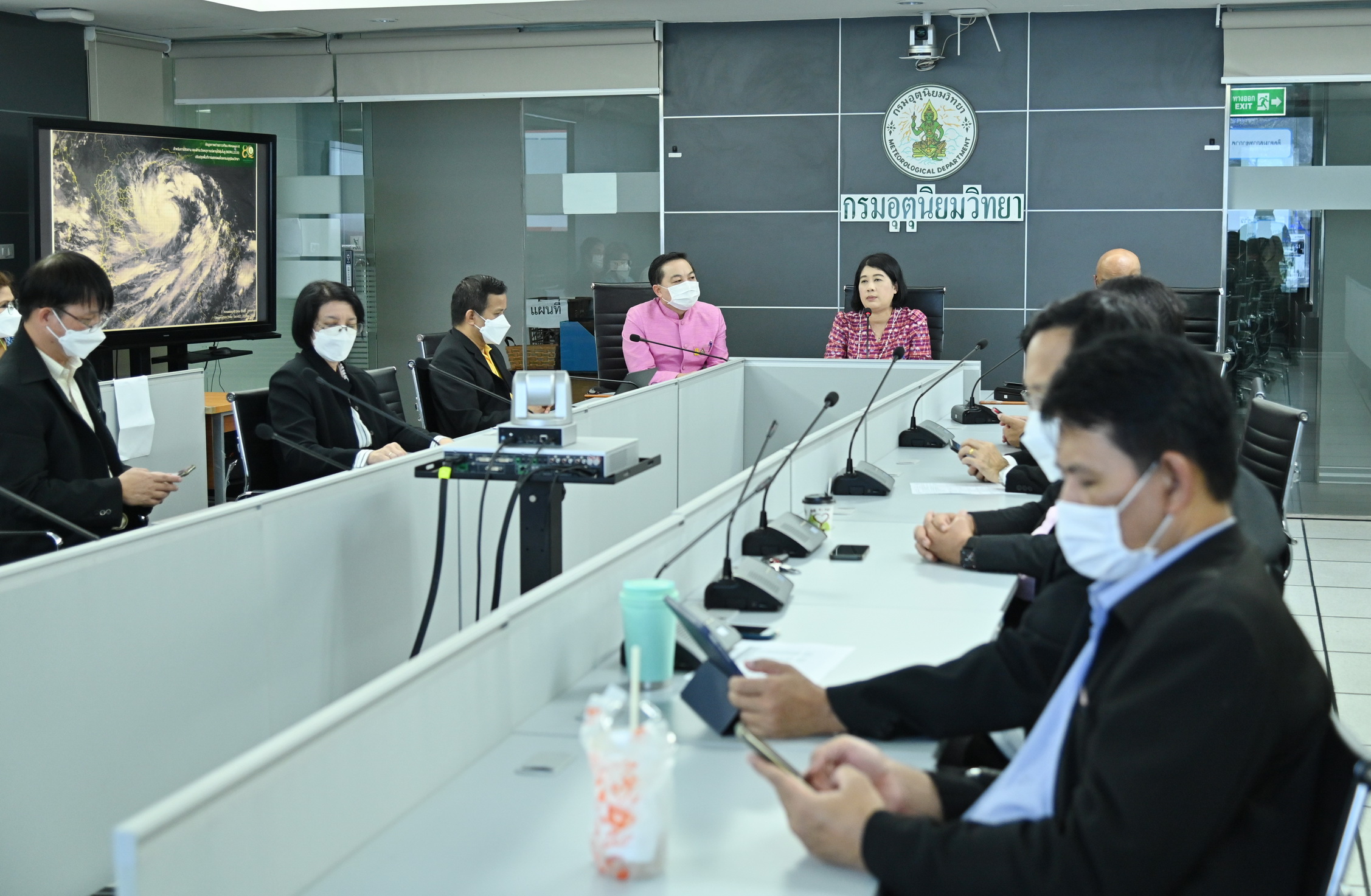 วันอังคารที่ 27 กันยายน 2565 เวลา 14.00 น. ดร. ชมภารี ชมภูรัตน์ อธิบดีกรมอุตุนิยมวิทยา พร้อมด้วย ว่าที่ร้อยตรี ธนะสิทธิ์ เอี่ยมอนันชัย รองอธิบดีฝ่ายวิชาการ นายธนาวุฒิ ปัญจพรอุดมลาภ รองอธิบดีฝ่ายปฏิบัติการ คณะผู้บริหาร นักวิชาการ และเจ้าหน้าที่ผู้เกี่ยวข้องทั้งในส่วนกลางและส่วนภูมิภาค ร่วมประชุมติดตามสถานการณ์ พายุไต้ฝุ่น “โนรู (NORU)” ผ่านระบบ Video Conference ณ ศูนย์ปฏิบัติการพยากรณ์อากาศ ชั้น 11 อาคาร 50 ปี อุตุนิยมวิทยา