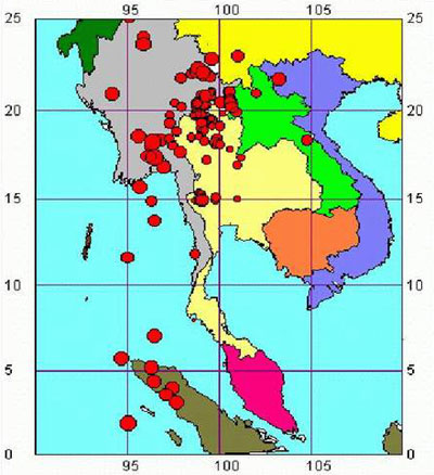 15 สิงหาคม 2542 :ตอนใต้ของประเทศพม่า ขนาด 5.6 ริคเตอร์ รู้สึกได้ที่จังหวัดเชียงใหม่