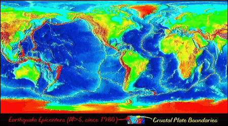 แผ่นดินไหว เป็นปรากฎการณ์ธรรมชาติ เกิดจากการเคลื่อนตัวโดยฉับพลันของเปลือกโลก ส่วนใหญ่ แผ่นดินไหวมักเกิดตรงบริเวณขอบ ของแผ่นเปลือกโลกเป็นแนวแผ่นดินไหวของโลกการเคลื่อนตัวดังกล่าว เกิดขึ้นเนื่องจากชั้นหินหลอมละลาย ที่อยู่ภายใต้เปลือกโลกได้รับพลังงานความร้อนจากแกนโลก และลอยตัวผลักดันให้เปลือกโลกตอนบนตลอดเวลาทำให้เปลือกโลกแต่ละชิ้นมีการเคลื่อนที่ในทิศทางต่าง ๆ กันพร้อมกับสะสมพลังงานไว้ภายในบริเวณขอบของชิ้นเปลือกโลกจึงเป็นส่วนที่ชนกันเสียดสีกัน หรือแยกจากกันหากบริเวณขอบของชิ้นเปลือกโลกใด ๆ ไม่ผ่านหรืออยู่ใกล้กับประเทศใดประเทศนั้นก็จะมีความเสี่ยงต่อภัยแผ่นดินไหวสูง เช่น ประเทศญี่ปุ่น ประเทศฟิลิปปินส์ ประเทศอินโดนีเซีย นิวซีแลนด์ เป็นต้น นอกจากนั้นพลังที่สะสมในเปลือกโลกถูกส่งผ่านไปยังเปลือกโลกพื้นของทวีป ตรงบริเวณรอยร้าวของหินใต้พื้นโลกหรือที่เรียกว่า "รอยเลื่อน" เมื่อระนาบ รอยร้าวที่ประกบกันอยู่ได้รับแรงอัดมากๆ ก็จะทำ ให้รอยเลื่อนมีการเคลื่อนตัวอย่างฉับพลันเกิดเป็น แผ่นดินไหวเช่นเดียวกัน