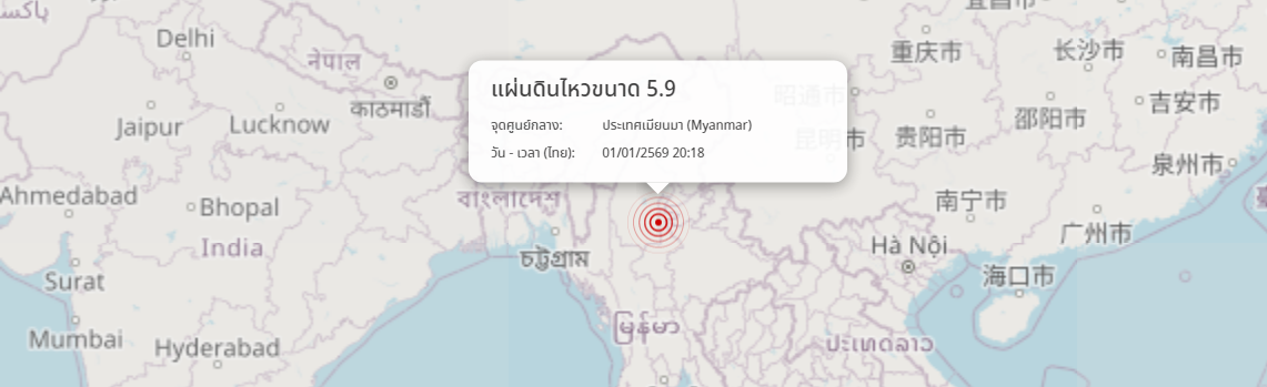 แผ่นดินไหว ประเทศเมียนมา (Myanmar) ขนาด 5.9