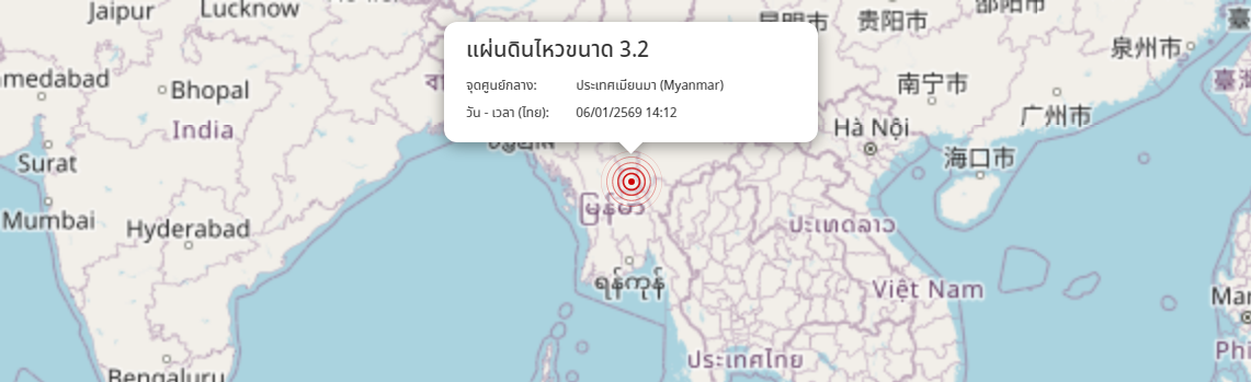 แผ่นดินไหว ประเทศเมียนมา (Myanmar) ขนาด 3.2