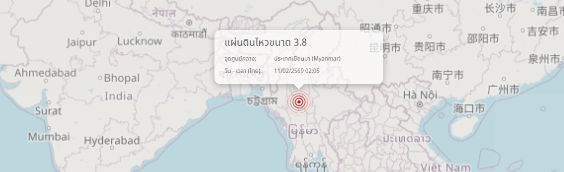 แผ่นดินไหว ประเทศเมียนมา (Myanmar) ขนาด 3.8