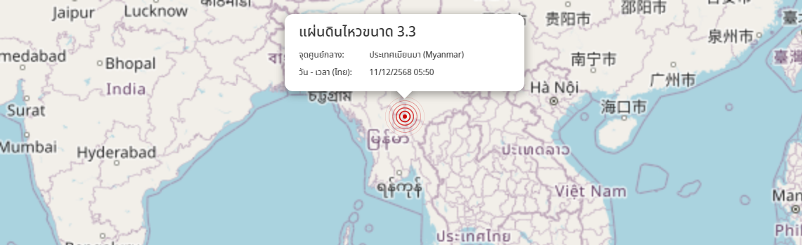แผ่นดินไหว ประเทศเมียนมา (Myanmar) ขนาด 3.3