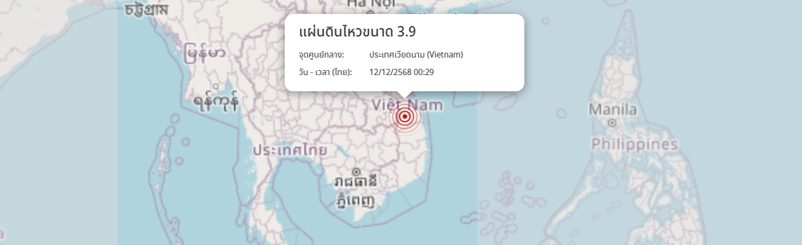 แผ่นดินไหว ประเทศเวียดนาม (Vietnam) ขนาด 3.9