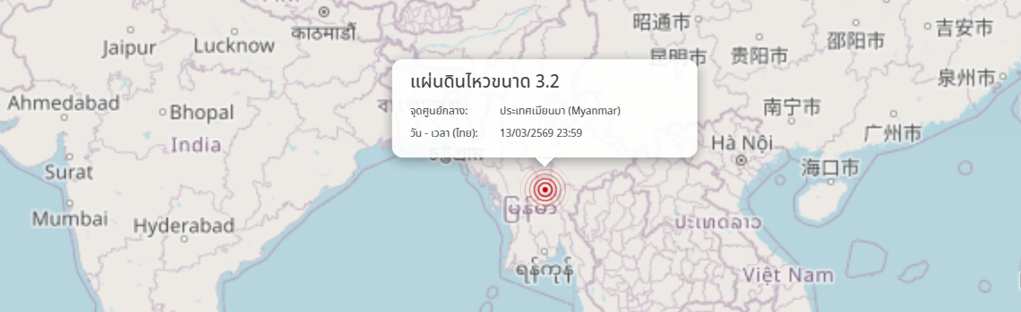 แผ่นดินไหว ประเทศเมียนมา (Myanmar) ขนาด 3.2