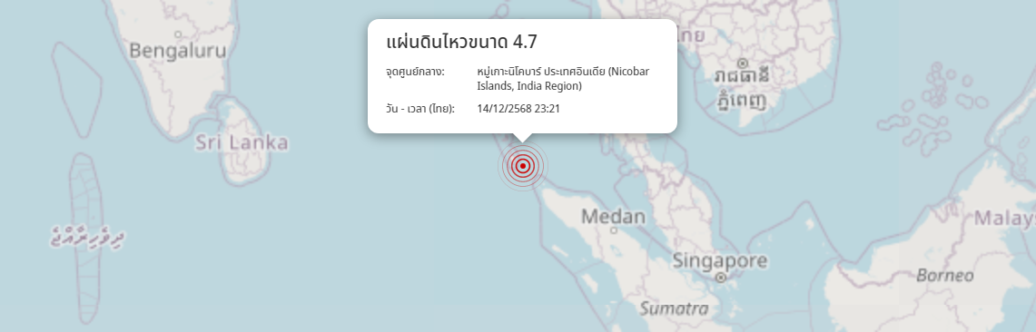 แผ่นดินไหว หมู่เกาะนิโคบาร์ ประเทศอินเดีย (Nicobar Islands, India Region) ขนาด 4.7