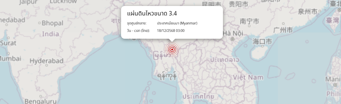 แผ่นดินไหว ประเทศเมียนมา (Myanmar) ขนาด 3.4