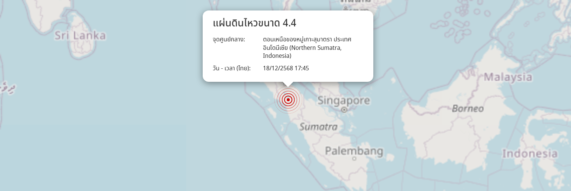 แผ่นดินไหว ตอนเหนือของหมู่เกาะสุมาตรา ประเทศอินโดนีเซีย (Northern Sumatra, Indonesia) ขนาด 4.4