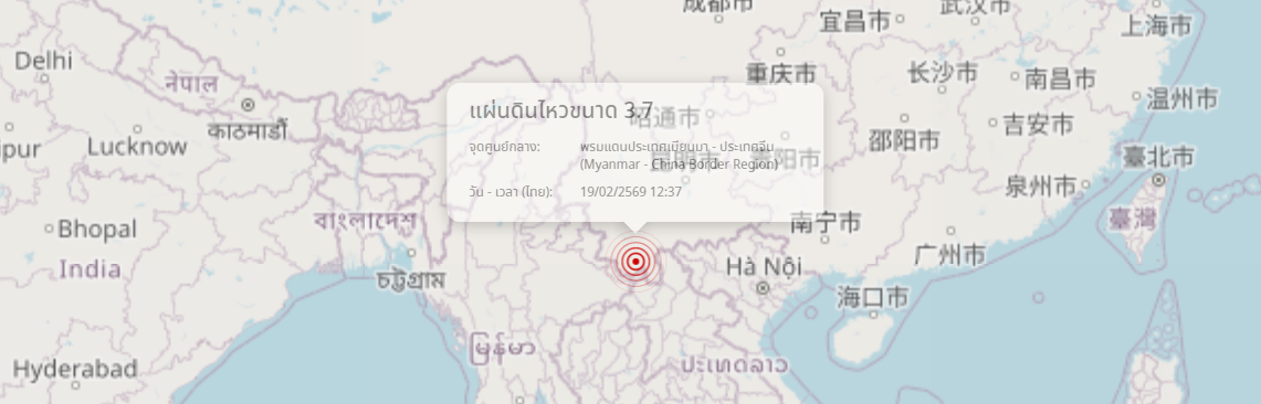 แผ่นดินไหว พรมแดนประเทศเมียนมา - ประเทศจีน (Myanmar - China Border Region) ขนาด 3.7