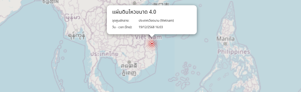 แผ่นดินไหว ประเทศเวียดนาม (Vietnam) ขนาด 4.0