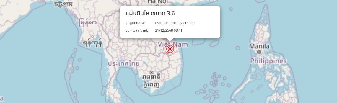 แผ่นดินไหว ประเทศเวียดนาม (Vietnam) ขนาด 3.6