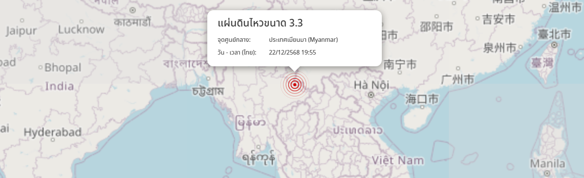 แผ่นดินไหว ประเทศเมียนมา (Myanmar) ขนาด 3.3