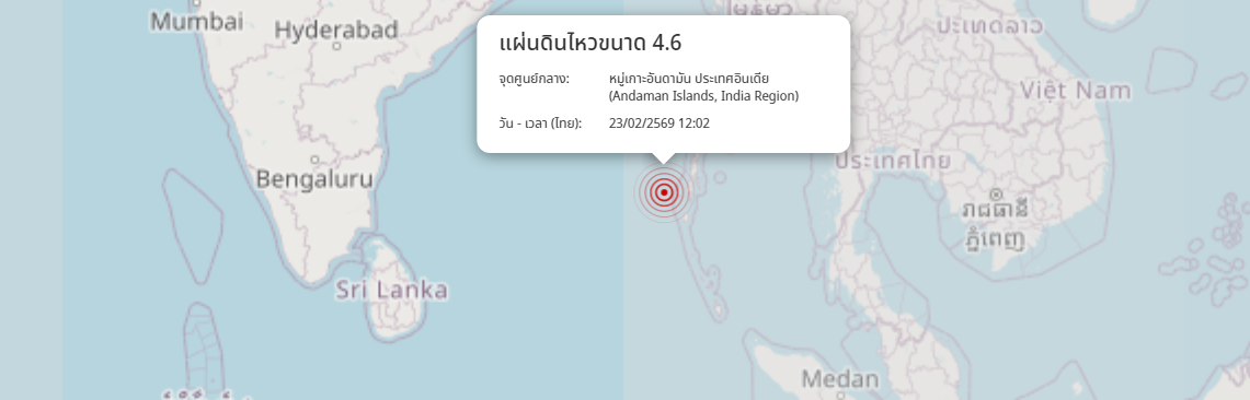 แผ่นดินไหว หมู่เกาะอันดามัน ประเทศอินเดีย (Andaman Islands, India Region) ขนาด 4.6