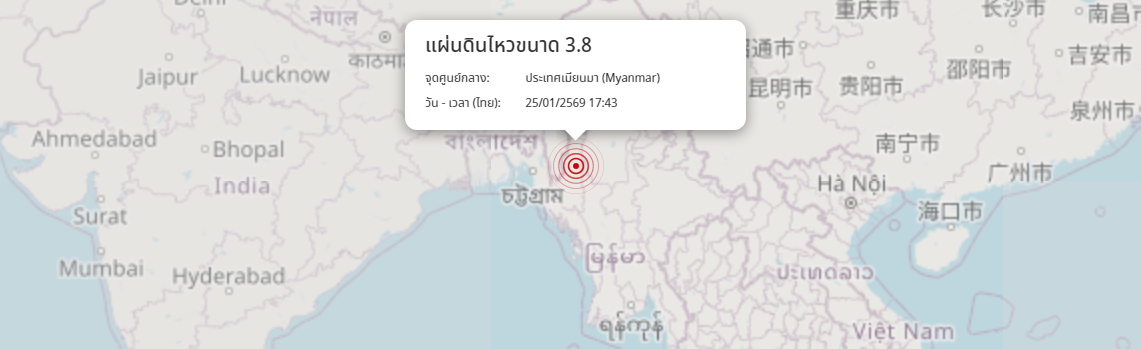 แผ่นดินไหว ประเทศเมียนมา (Myanmar) ขนาด 3.8