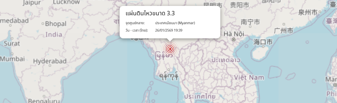 แผ่นดินไหว ประเทศเมียนมา (Myanmar) ขนาด 3.3